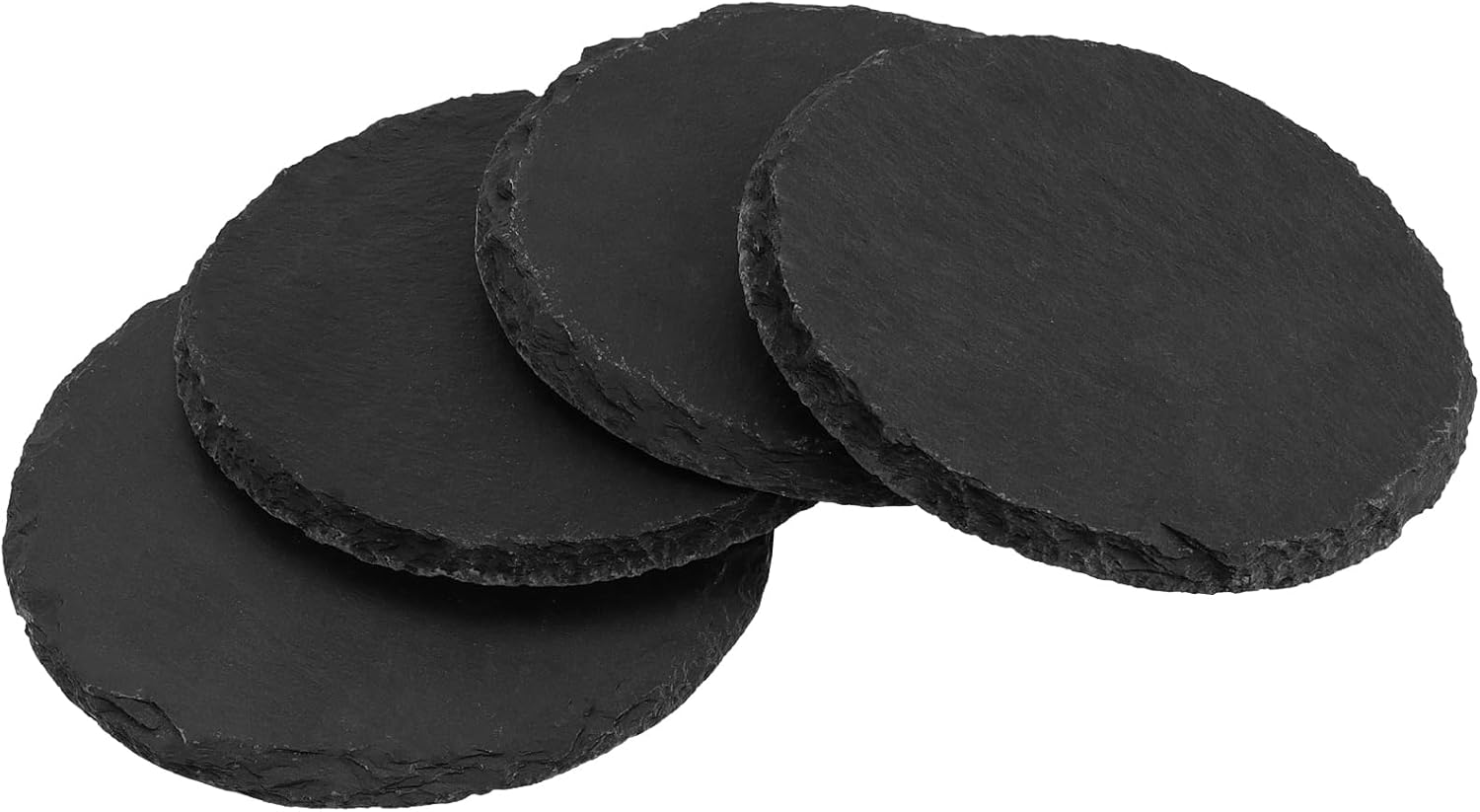 - NATURAL SLATE - These round slate coasters are made of natural slate material, sturdy and reliable, with a unique texture, more simple and rustic. Some of the edges are a little rough, which adds to the beauty, comfortable to the touch, and can be used for a long time.